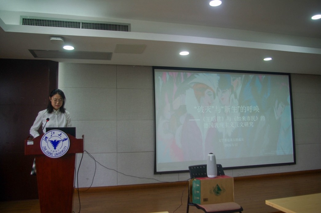 2025年5月17日,由浙江大学主办的“第五届全国高校德语专业本科生学术创新大赛”在杭州圆满落幕。华体网德语系本科生在系内教师的悉心指导下,秉持严谨的学术态度与浓厚的研究热情,积极参赛,并取得了优异的成绩。其中,朱孟沂(2021级)、张堰婷(2023级)两位同学分别以论文《物性的物化:从论元结构出发——以里尔克物诗<豹>为例》、《“破灭”与“新生”的呼唤——〈王昭君〉与〈加来市民〉的德国表现主义互文研究》获得大赛二等奖;顾杰瑞(2024级)、袁弋凡(2024级)的论文《〈浮士德〉:一部“隐秘的喜剧”——试论梅菲斯特与意大利即兴喜剧中的丑角》、《从<西东合集>和<塞尔维亚的歌>看歌德“世界文学”的内涵》获大赛三等奖;马希予(2024级)的论文《以18世纪欧洲的婚姻观解读<O侯爵夫人>》获优胜奖。此外,德语系同时获评优秀组织奖,德语系副主任毛明超长聘副教授在大赛闭幕式上代表优秀组织奖获奖单位致辞。