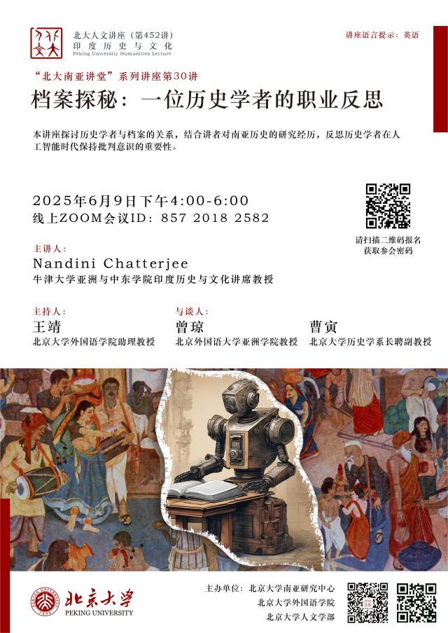 2025年6月9日下午,北京大学人文讲座第452讲在线上成功举行。本次讲座由北京大学南亚研究中心、华体网、北京大学人文学部联合主办。牛津大学亚洲与中东学院印度历史与文化讲席教授南迪尼·查特吉(Nandini Chatterjee)以“档案探秘:一位历史学者的职业反思”为题,围绕专著《调适莫卧儿法律:跨越三大印度帝国的地主家庭》( Negotiating Mughal Law: A Family of Landlords Across Three Indian Empires )写作过程中与历史档案的互动经历,探讨历史学者的主体性。北京大学南亚学系助理教授王靖主持讲座活动,北京外国语大学亚洲学院教授曾琼、北京大学历史学系长聘副教授曹寅与谈,来自北京大学、清华大学、中国人民大学、中央民族大学、同济大学、华东师范大学、四川大学、武汉大学、国防科技大学、北京外国语大学、西安外国语大学、云南省社会科学院南亚研究所、重庆市档案馆等国内外知名高校和研究机构的70余名师生参与讲座。