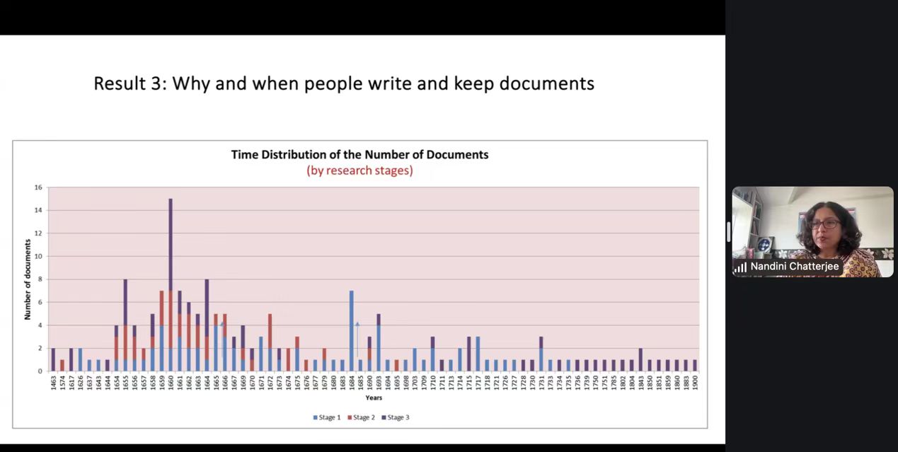 讲座中,查特吉教授从“档案”概念切入,分享档案解读的挑战与收获。她认为,在档案断代与重组过程中,研究者不仅要投入精力收集材料,更需在识读连缀时明确自身主体性,批判选用资料并认知档案背后的权力关系。最后她指出,研究者应进一步丰富档案资料,从多维度揭示帝国的壮阔历史。