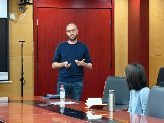 罗正鹏老师首先介绍了卢克·范·门塞尔副教授的学术背景。他于2014年获得比利时那慕尔大学语言学博士学位,现任西交利物浦大学人文与社会科学学院科研副院长。卢克·范·门塞尔副教授的研究聚焦于个人与社会层面的多语现象,在语言学、社会学及人类学等交叉领域展开探索,研究涉及家庭多语实践、语言景观、语言教育政策、社会情感因素与语言学习等话题。