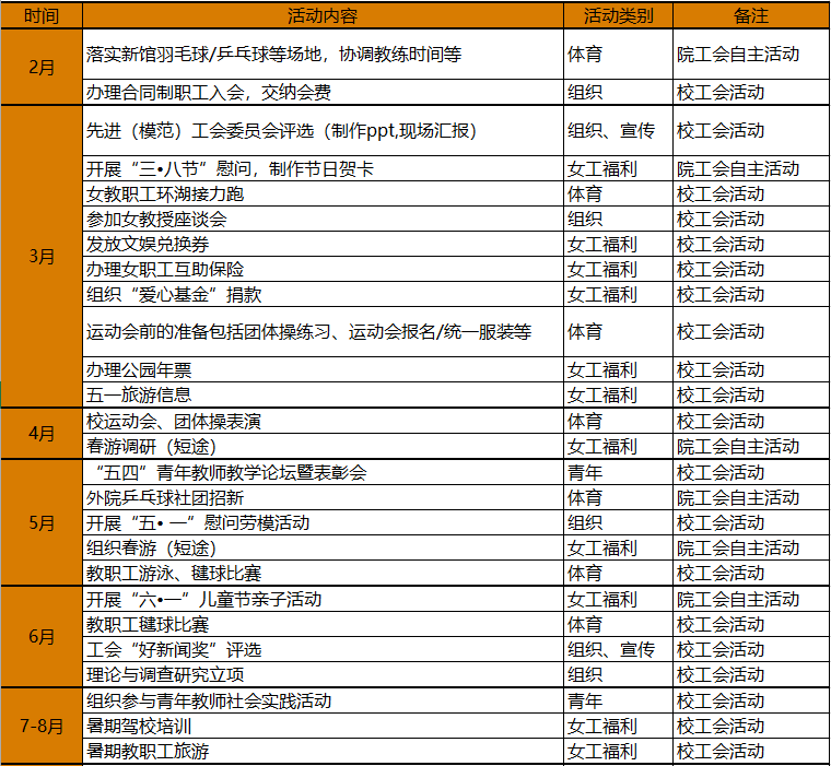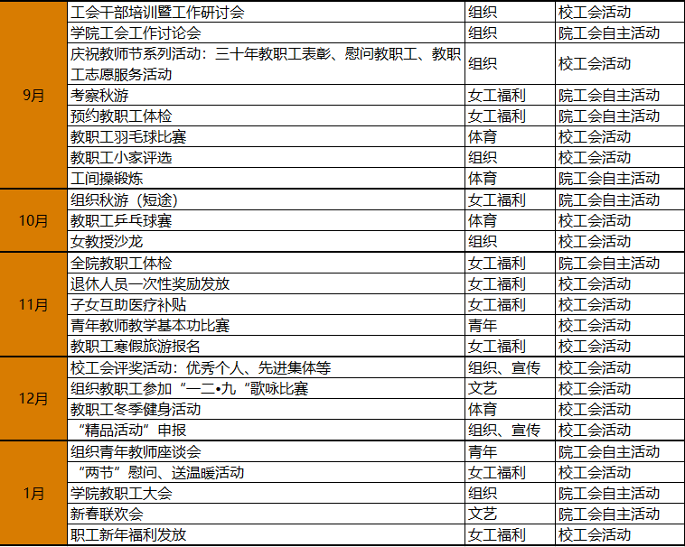 会议下发了《2019-2020学年华体网工会工作计划》,学院工会在配合学校工会完成“规定动作”之外,积极开展很多深受教师喜爱的“自主活动”,例如涵盖在职和离退休教师的春秋游、各种节日的慰问、组建文体社团、组织青年教师座谈会、召开学院教职工大会、举办新春联欢会等丰富多彩的活动。在活动中,各位工会委员各司其职,亲密配合,提前规划,通力协作,全力打造外院工会一个又一个精品活动。