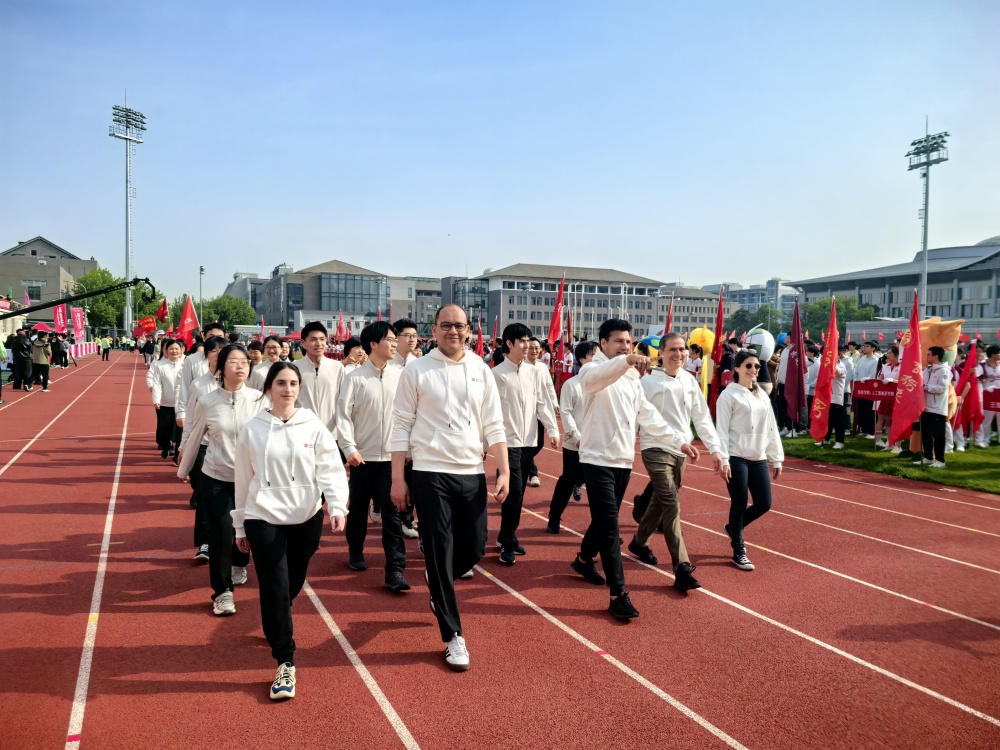 本届运动会中华体网外教团队积极参加开幕式,他们有来自埃及的Mahmoud Emam Ahmed Abdellatif,来自西班牙的Estela Belén Peinado Sánchez,来自意大利的Giuseppina Giummarra,来自巴基斯坦的Muhammad Arshad Bhatti,来自美国的Alexander Raymond Gonzales。他们身着统一服装,昂扬走在五四体育场的跑道上,以饱满的热情融入北大体育文化的盛事中。此外,外教们还积极参与了同心鼓等集体项目,在协作中增进团队凝聚力,展现了跨文化交流的独特魅力。他们的加入,为运动会注入了更多国际化元素,也彰显了华体网开放包容的学院文化。