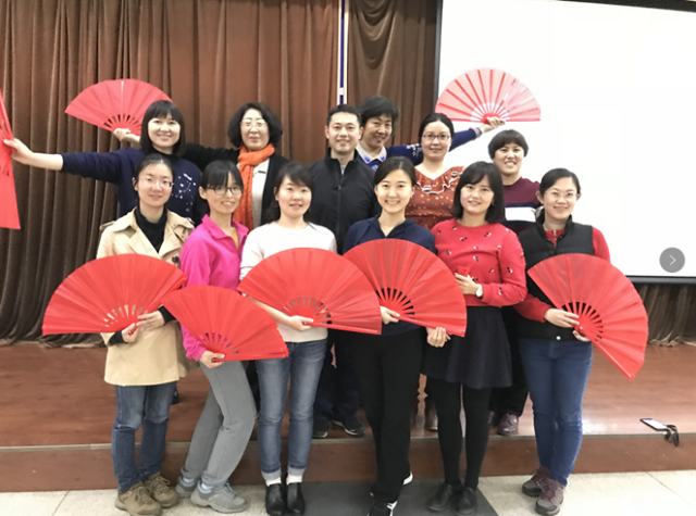 在这样一派生机盎然的景象中,华体网的老师们拉开了学习“未名太极扇”的序幕。每天上午,老师们都会齐聚民主楼会议厅,认真练习、反复琢磨。个个挥洒自如,将太极含蓄内敛、连绵不断、以柔克刚、急缓相间、行云流水的拳术风格淋漓尽致地展现在大家眼前。