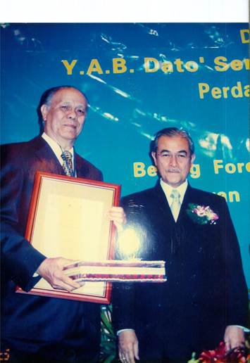 2004年马来西亚首相巴达维(Abdullah Ahmad Badawi)为梁立基教授(左一)颁发“马来西亚-中国友好人物奖”