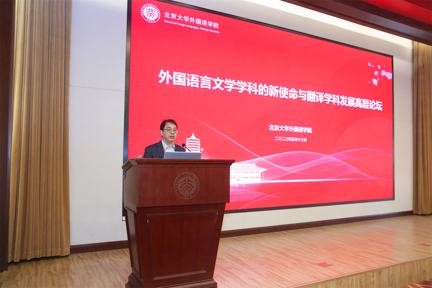 孙庆伟代表北京大学向各位嘉宾的到来表示热烈欢迎。他指出,外国语言文学学科和翻译学科承担了促进中外学术交流与跨文化的重要使命。当今世界面临百年未有之大变局,面对新形势,如何利用外语向国际社会传递中国精神,助推中国叙事体系构建与国际传播能力建设,是学科改革创新的核心课题,也是外国语言文学科应当深入探讨的重要议题。北大外语学科秉承“人文为本,多元并存,交叉发展”的优良学术传统,立足传统优势,积极推动人才培养模式改革,为国家和社会培养和输送了一大批以外语为基础,学有专长、学兼中外的复合型人才;积极开展文化传承与创新工程,深化中外学术交流对话,整理传播人类文明的优秀遗产,为推动中外文化交流互鉴作出了重要贡献。此次高层论坛的举行必将对推动我国外国语言文学学科和翻译学科的建设产生积极而深远的影响。