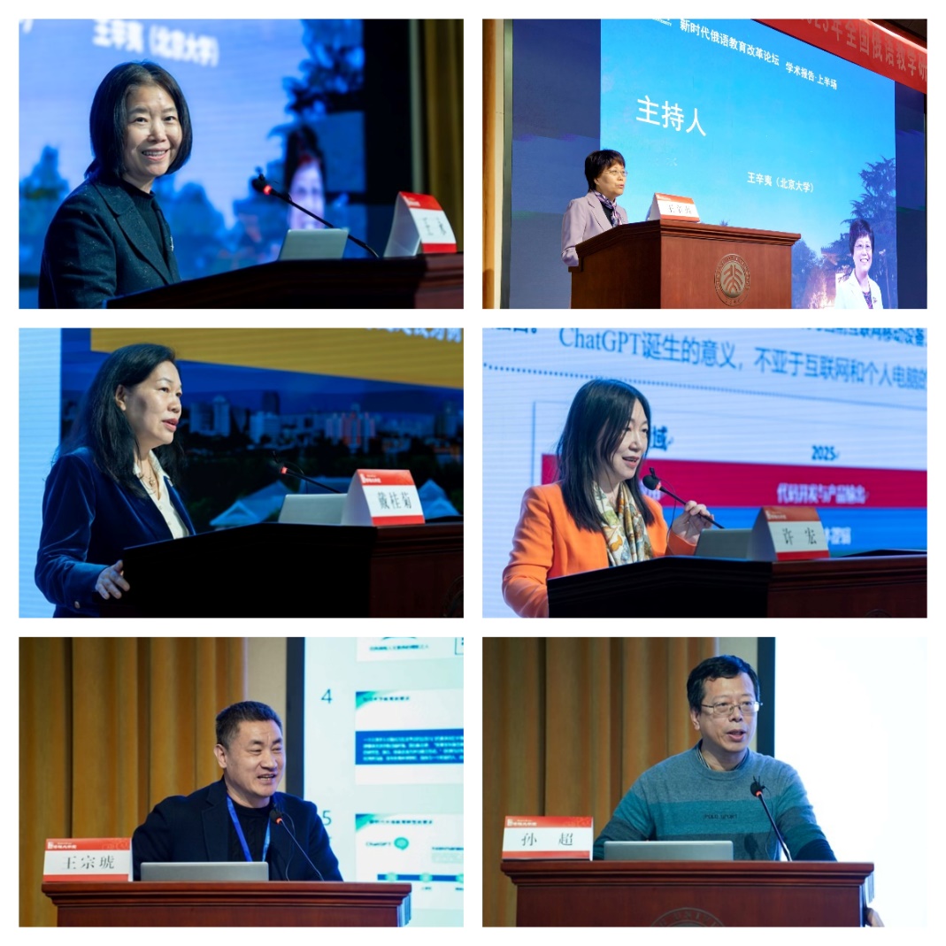 开幕式后,八位专家进行了主旨发言。上半场报告由浙江大学王永教授、北京大学王辛夷教授主持,北京外国语大学俄语学院院长戴桂菊教授报告了本校国家级一流本科专业建设中的联合培养模式,上海外国语大学俄罗斯东欧中亚学院院长许宏教授探讨了数智化时代俄语专业建设的改革与实践可探索的方向,首都师范大学华体网院长王宗琥教授论述了以语言与文化融合为导向的外语教育理念与实践,黑龙江大学俄语学院院长孙超教授报告了黑龙江大学俄语学院在新文科背景下对俄语拔尖创新人才培养的探索与实践。
