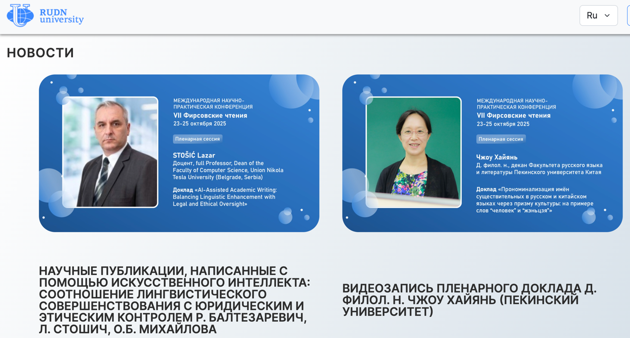 俄罗斯友谊大学官网对周海燕主旨视频报告的宣传页