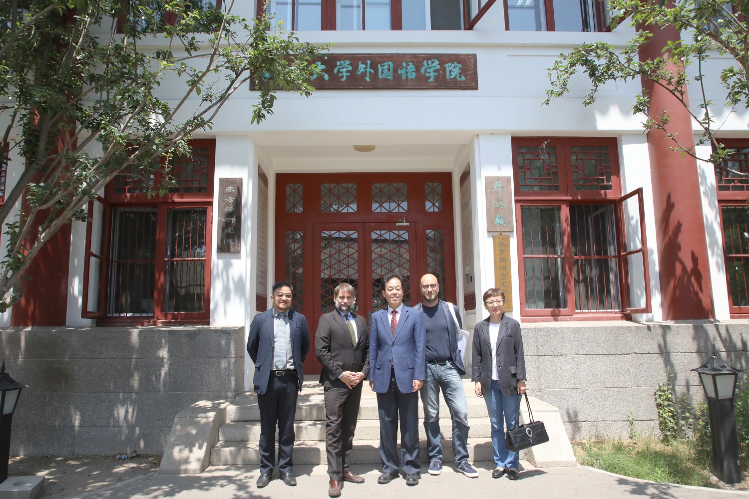 随后,代表团一行来到外文楼,与副院长付志明教授进行了会面。付志明教授对参赞一行的来访表示热烈欢迎,并向参赞介绍了北大外院意大利语专业成立历史及发展情况。菲德利克参赞表示将继续支持北京大学意大利语专业的发展,帮助促进意大利高校与北大意语专业在学术与学生方面的交流,合作举办各类学术及文化活动。双方围绕进一步开展交流与合作进行了深入的探讨。一同来访的还有意大利驻华使馆文化处参赞助理王蕾蕾女士、那不勒斯东方大学Enrico Fardella教授。