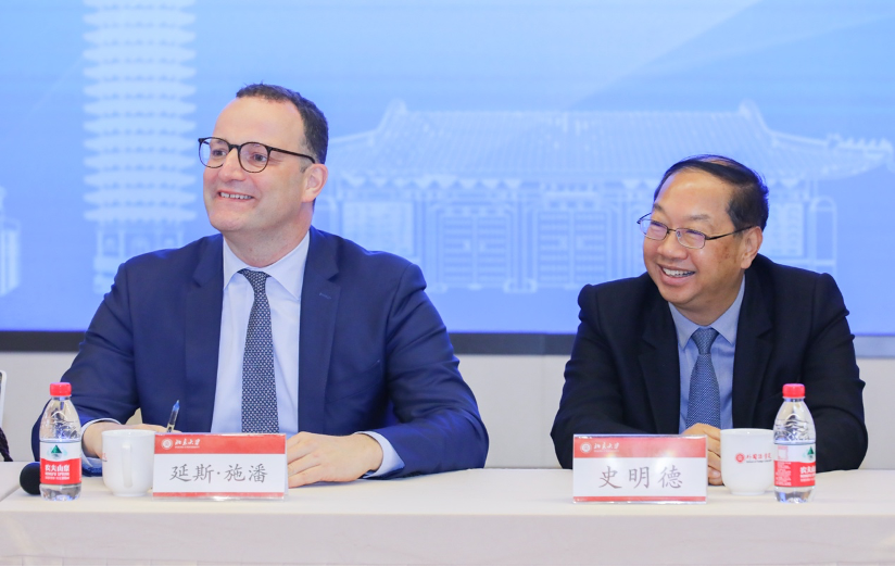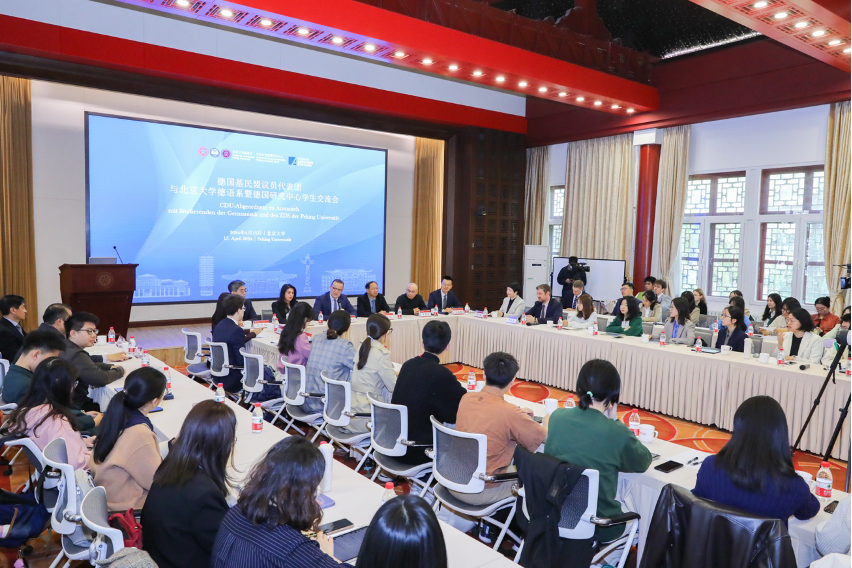 2024年4月15日,德国联邦议会议员、基民盟-基社盟议会党团副主席、联邦卫生部原部长延斯·施潘(Jens Spahn),联邦议会议员居乐(Serap Güler)率德国联邦议会基民盟议员代表团访问北京大学。北京大学党委书记、校务委员会主任郝平,校长、中国科学院院士龚旗煌分别会见代表团一行。中国德国友好协会会长、中国驻德前大使史明德,中国人民对外友好协会欧亚部副主任吕宏伟等陪同代表团来访,北京大学党委常委、副校长方方,华体网党委书记李淑静等陪同会见。华体网德语系、北京大学德国研究中心组织近四十名来自各个年级的优秀学生代表,与施潘一行交流座谈。德国研究中心主任黄燎宇、德语系主任胡蔚参与交流活动。活动由德语系副主任毛明超主持。