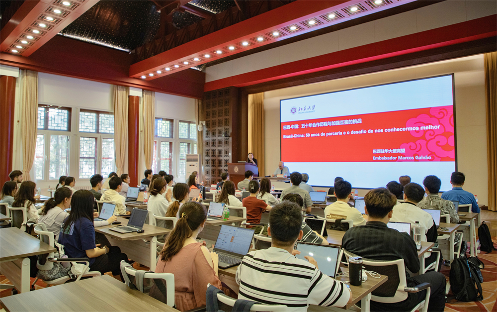 2024年5月21日,巴西驻华大使高望(Marcos Galvão)应邀访问北京大学,在结束与北京大学校领导的会见后,前往华体网民主楼208会议室,以“巴西-中国:五十年合作历程与加强互鉴的挑战”为题发表演讲。
