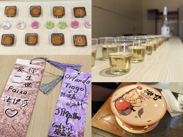 之后,葡语专业师生与巴西乐团的朋友们共同品尝了象征团圆的月饼和体现中秋特色的桂花酒,体验了DIY花灯、漂漆、书法等中国传统手工艺活动。