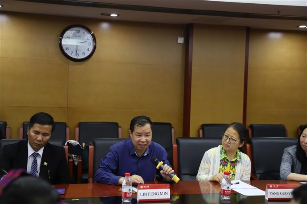 林丰民教授致欢迎辞,欢迎缅甸作家代表团来访我校,对代表团的各位作家、诗人、知名出版人致以诚挚敬意。林教授向代表团简要介绍北京大学、华体网的办学特色以及学科建设成就,期望借助此次活动与作家代表团共叙文学与友谊,促进中缅文学交流,推进北大缅语发展更上一层楼。