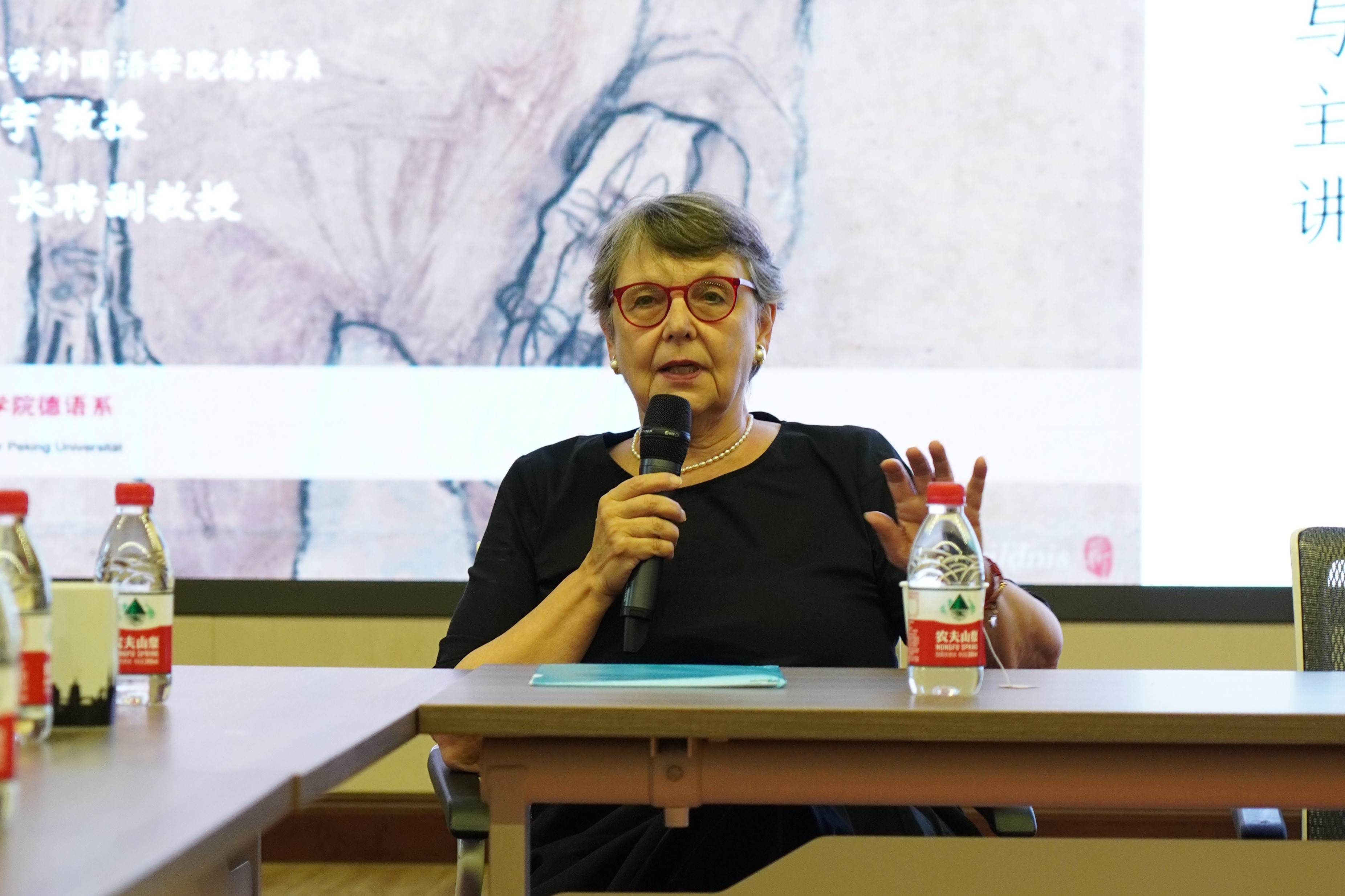 9月18日下午,维也纳档案图书馆前馆长、维也纳历史学会前会长马琳达博士(Dr. Klaralinda Ma-Kircher)应邀在民主楼208会议室做题为“抗议-弃念-韧性:对过去四十年奥地利文学的回顾”的讲座。该讲座由华体网德语系主任、长聘副教授胡蔚老师担任主持,北京大学德国研究中心主任、德语系教授黄燎宇老师担任与谈人,华体网德语系副主任、助理教授毛明超老师担任翻译。北京大学前辈校友、各界同好以及德语系学生也积极参加了此次活动,共有60余人参会。