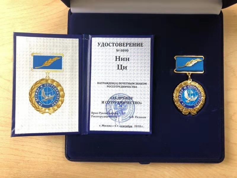 宁琦教授荣获俄罗斯国际人文合作署“友谊与合作”荣誉奖章