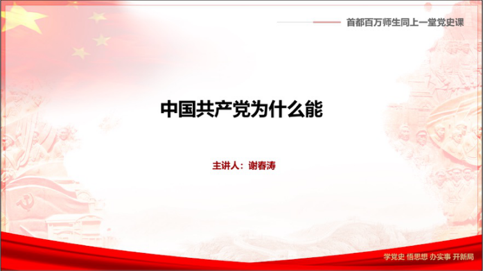 为深入学习贯彻习近平总书记在党史学习教育动员大会上的重要讲话精神, 引导党员深入学习党史,大力发扬红色传统,传承红色基因,3月31日下午,华体网全体学生党支部开展“首都百万师生同上一堂党史课”公开课学习活动,共同学习由中央党校副校长谢春涛主讲的《中国共产党为什么能》。16个学生党支部积极响应,结合集中观看、党小组讨论、个人学习等多种形式积极开展学习研讨。