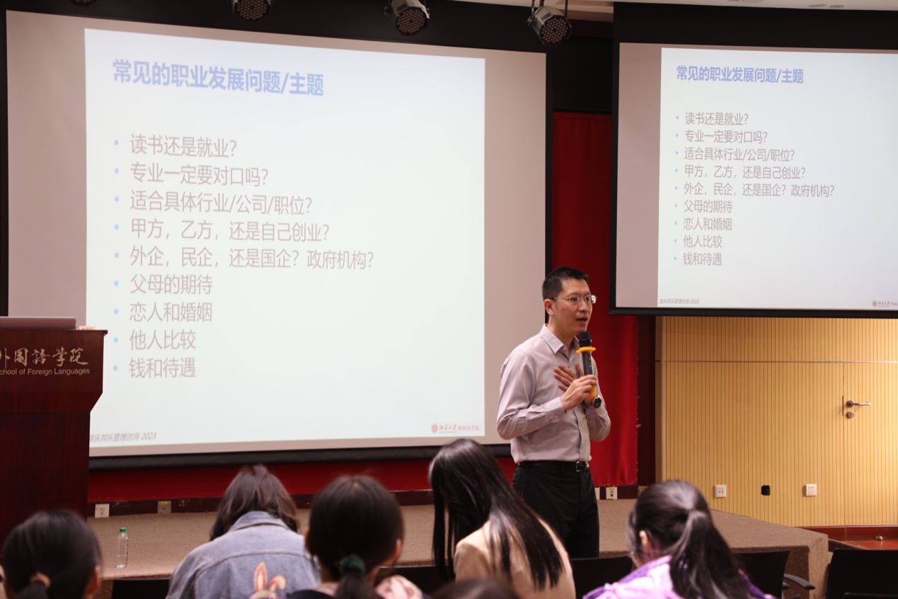 随后,邹飞让同学们写下自己心中关于职业发展的困惑与问题,并就一些常见问题做出分析和解答。邹飞告诉同学们,“职业规划就是人生规划,没有完美,只有匹配”,并激励同学们通过实际行动积极探索适合自己的行业和岗位。