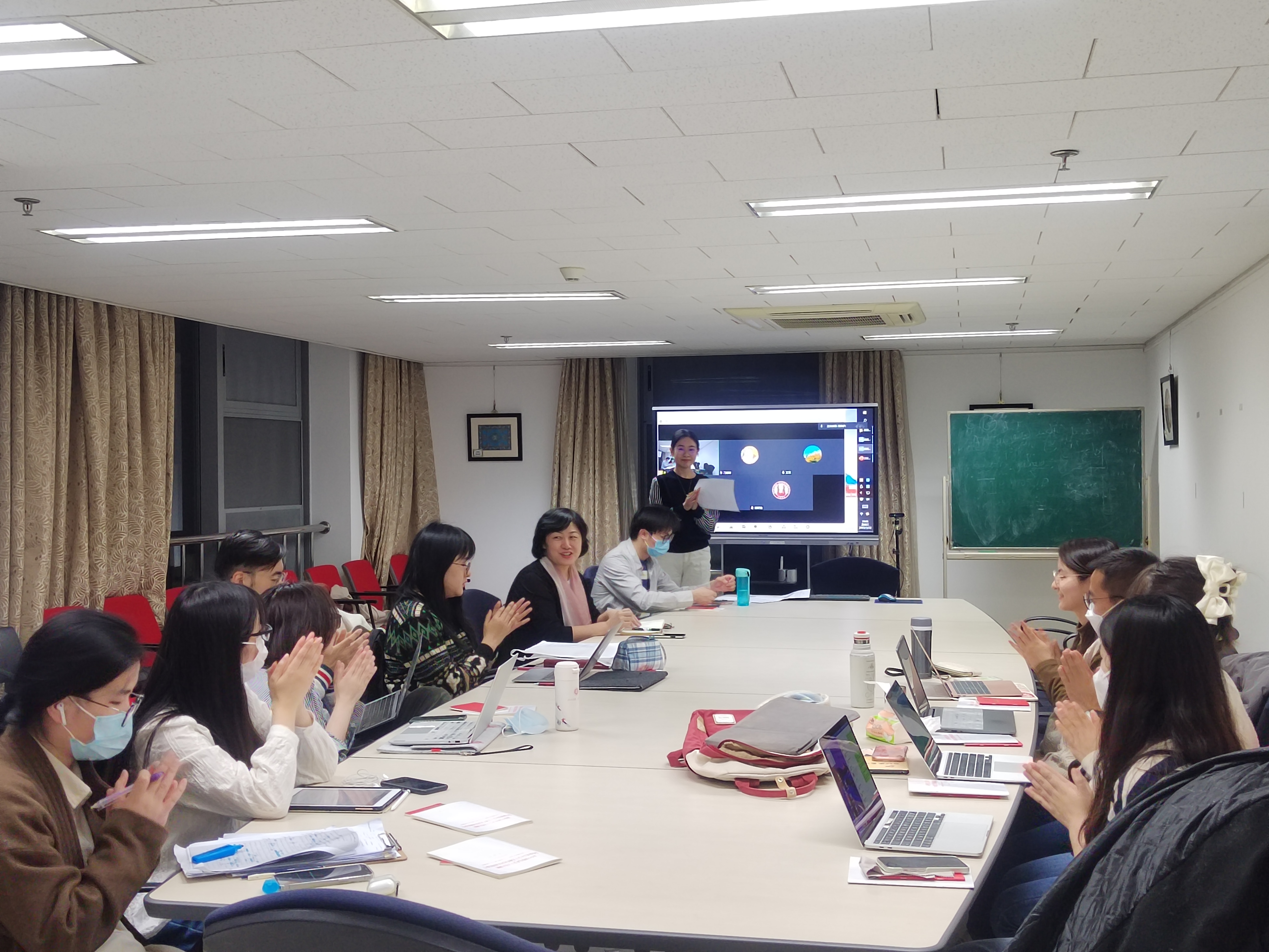 最后,王丹对本次会议进行总结点评。她首先对亚非研究生党支部过去一年的工作表示肯定,也对于各位支部成员过去一年获得的成长与进步表示欣慰。随后,王丹带领大家回顾了北大外院的历史,明确外语人连接中国与世界的责任与使命,鼓励支部成员们扎实专业学习、坚定信仰信念,将专业学习与理论学习相结合。最后,王丹针对支部成员在批评与自我批评环节中提出的问题给予指导。她鼓励大家发挥党员的积极作用,从自己做起,稳定情绪、提升效率、健康体魄,以饱满的精神状态迎接每一天。
