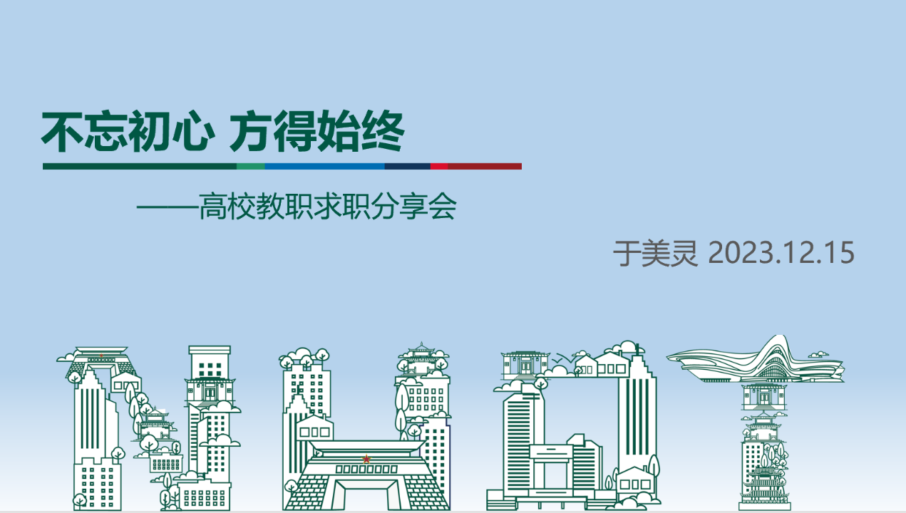 于美灵结合自身经历,从求职前准备、求职流程、工作感悟等方面进行了分享。她指出,要多渠道获取高校教职招聘信息,并保持积极的心态。高校教职不仅是一份工作,更是一种使命和责任,不忘初心,方得始终。
