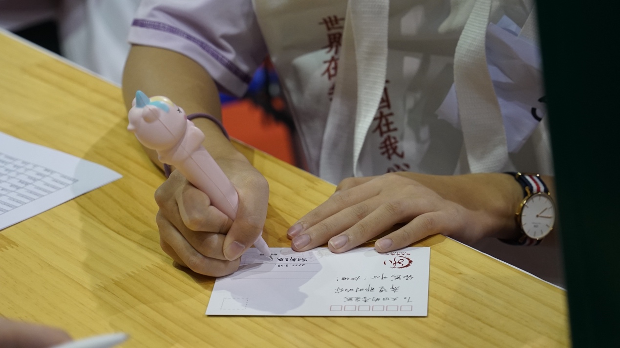 新生在明信片上写下对未来的期望