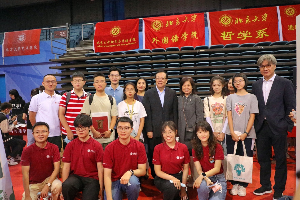 10点20分,校长龚旗煌,党委常委、副校长王博,党委副书记、副校长宁琦等校领导一行来到华体网迎新接待站关心新生报到情况,亲切询问新生基本情况,鼓励新生尽快适应大学生活,努力学习,并与现场师生合影留念。