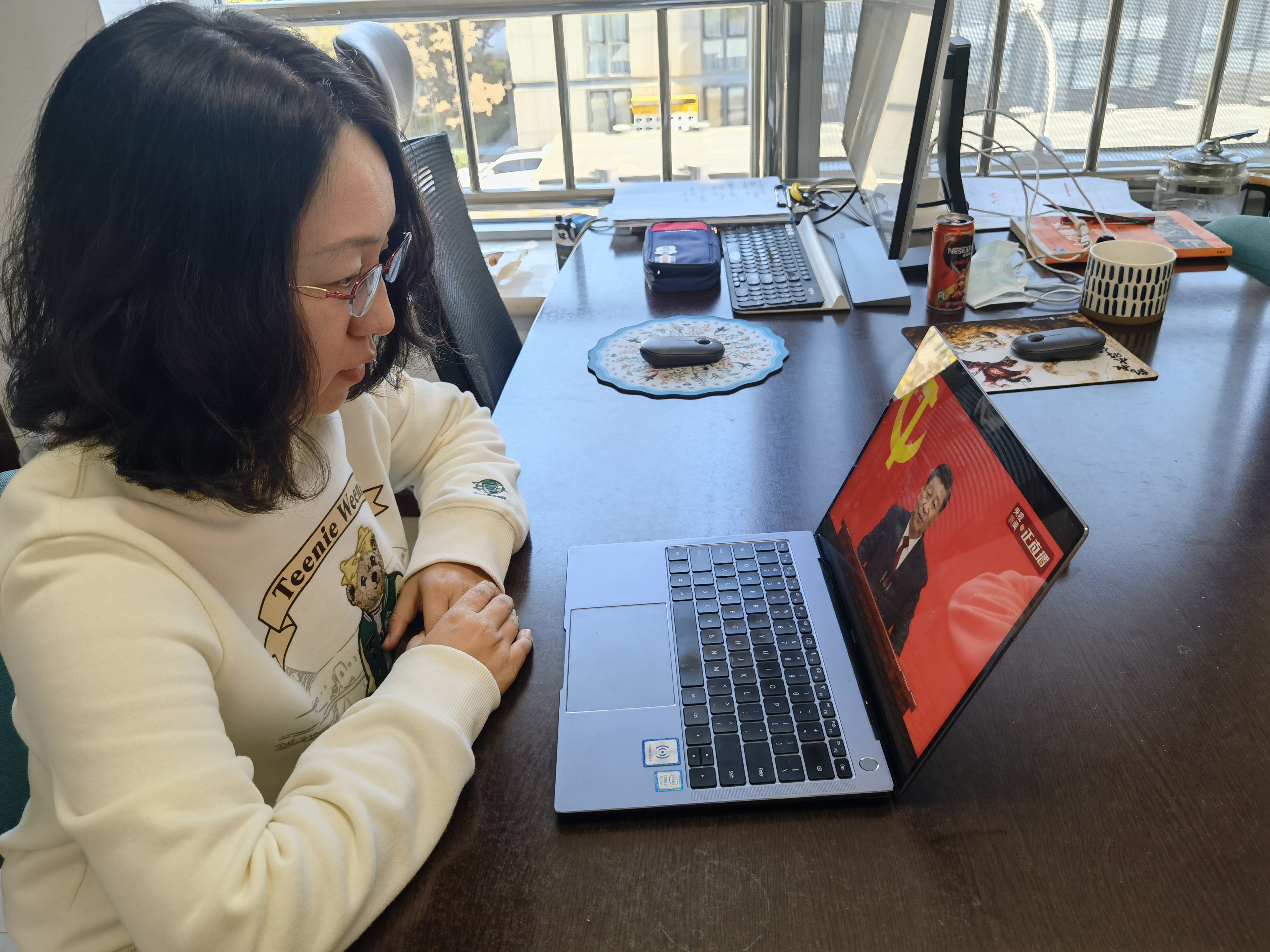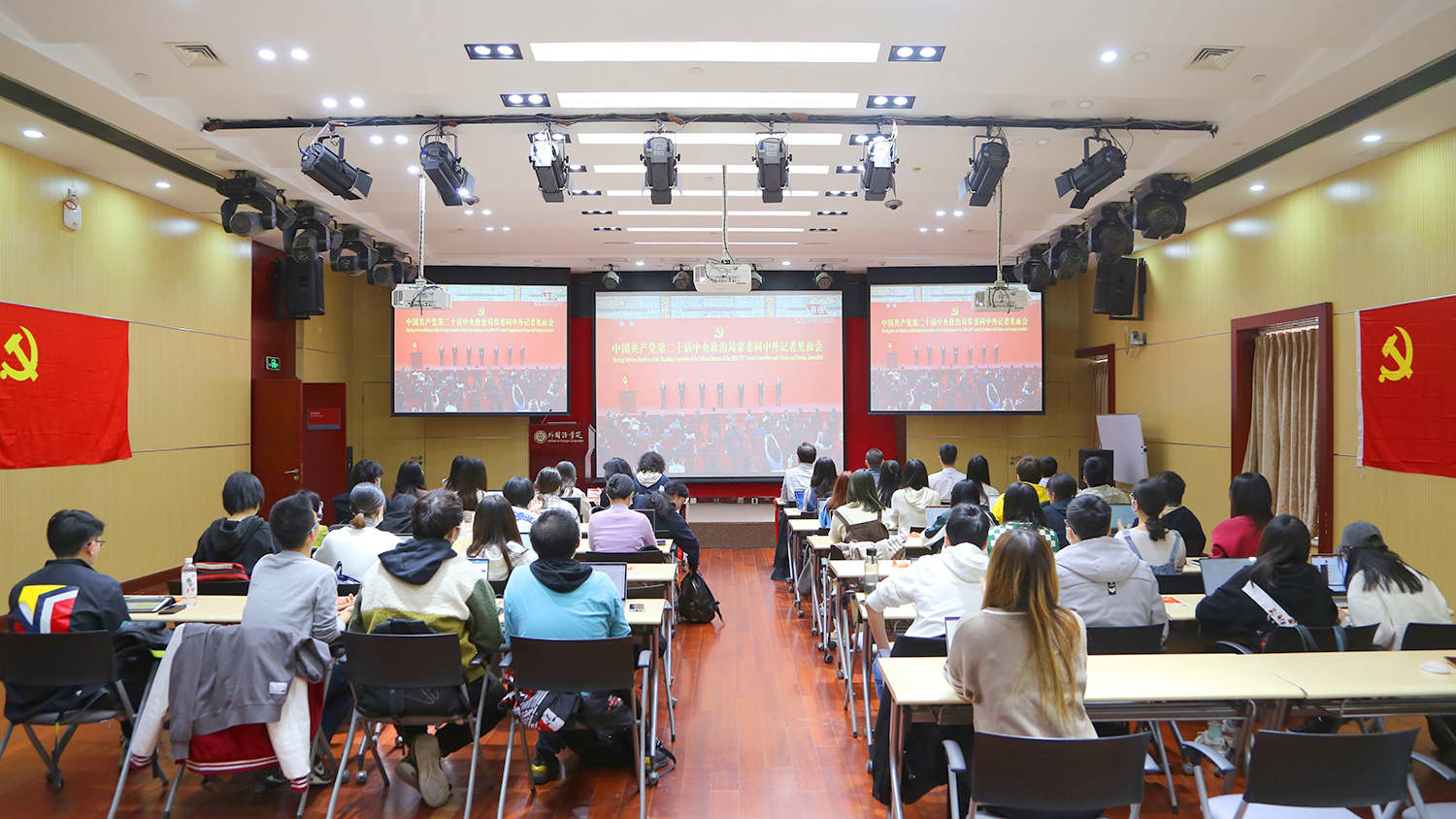 华体网组织师生集体观看第二十届中央政治局常委同中外记者见面会直播