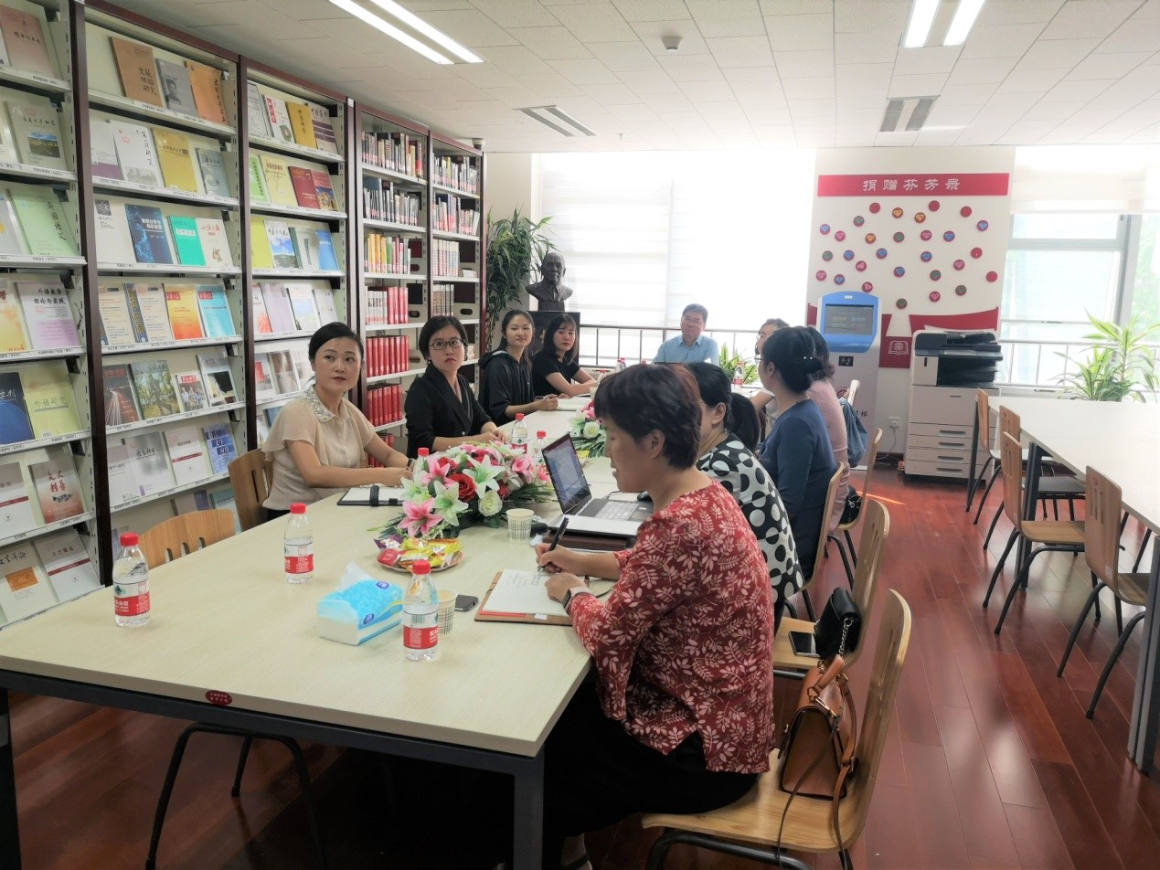 9月20日下午,北京大学习近平新时代中国特色社会主义思想研究院(以下简称“习研院”)孙熙国常务副院长、办公室主任黄宇蓝老师等一行7人赴我院进行了“不忘初心、牢记使命”相关主题调研学习交流。交流会在学院新楼图书分馆B102室举行。我院张冬梅副院长、办公室主任倪丽慧、业务办公室副主任张琳娜、图书分馆馆长张晓雁等多位老师参加了此次活动。