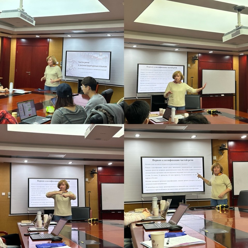 “俄汉语中的词类”讲座于22日上午在外院新楼B134会议室进行,讲座由北京大学俄语系主任、长聘副教授周海燕老师主持。