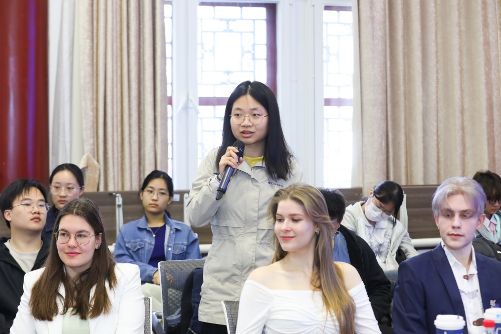 进入自由提问环节,学生相继就俄罗斯高等教育改革动向、两校合作前景、国际化语言人才培养路径等议题提问。代表团成员逐一回应,内容充实恳切,会场掌声不断。期间,当学生提出建立两校交换生项目的建议时,尼基塔·阿尼西莫夫校长明确表示,两校正稳步加深伙伴关系,推进建立协同机制,各层面、多维度的合作指日可待。