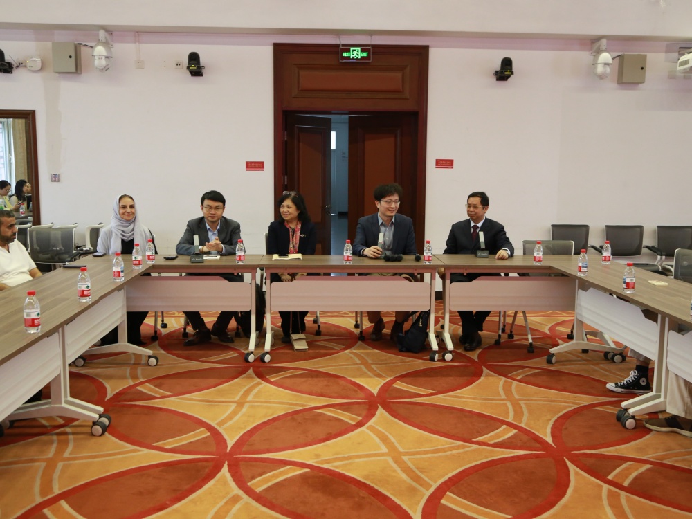上午10时许,代表团在民主楼208会议室与华体网师生开展座谈,华体网党委书记李淑静,北京大学社科部副部长、阿拉伯语系教授林丰民,北京大学阿拉伯语系副主任廉超群,北京大学阿拉伯语系助理教授李睿恒出席座谈。