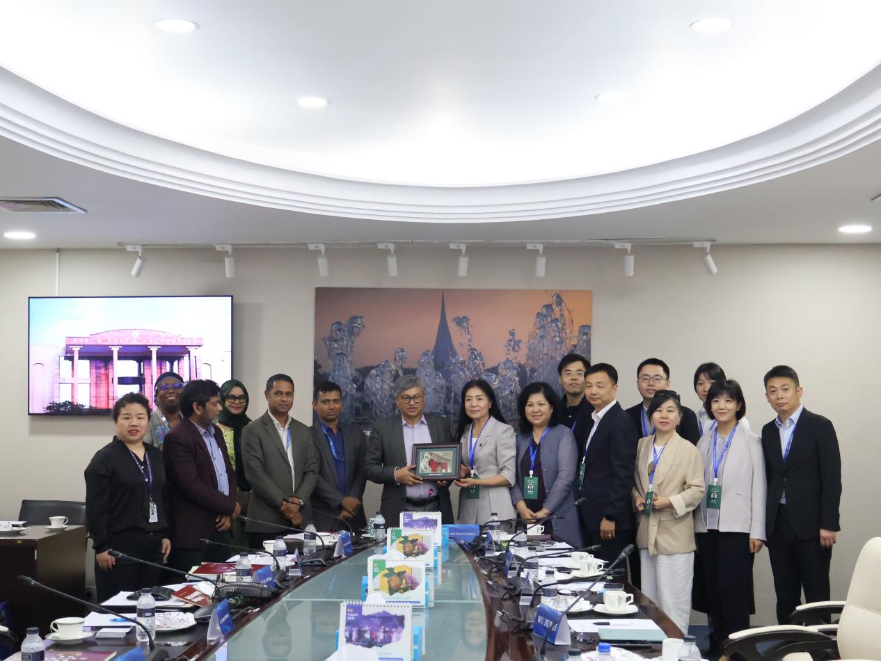 随后,调研团拜会达卡大学校长尼亚孜·阿哈迈德·汗(Niaz Ahmed Khan)教授。双方回顾了两国传统友谊,就深化高等教育合作达成共识,重点探讨了在数字经济、人才培养等领域的合作前景。此次访问为两校在“一带一路”框架下的务实合作开辟了新路径,将进一步提升中孟教育交流水平。